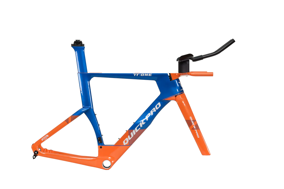 The UCI Approved Quick Pro Time Trial bike is built for one purpose — pure aerodynamic efficiency. Every tube, junction, and contour is optimized through extensive wind tunnel testing to minimize drag and maximize straight-line speed. Featuring an aggressive geometry that positions the rider for peak power transfer and reduced frontal area, it delivers unmatched stability even at high velocity. Crafted from high-modulus carbon fiber, the frame balances stiffness with lightweight performance, ensuring every watt goes directly into forward motion. With fully integrated cabling, aero cockpit, and race-proven design, this machine is engineered to slice through the air and dominate the clock.