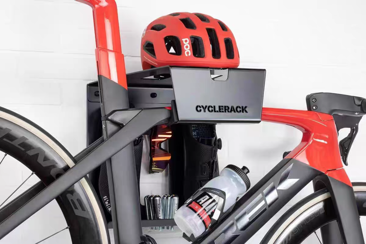 Combined with stylish storage for your helmet, shoes, glasses and various other accessories, this is the perfect indoor storage solution for your dropbar companion.